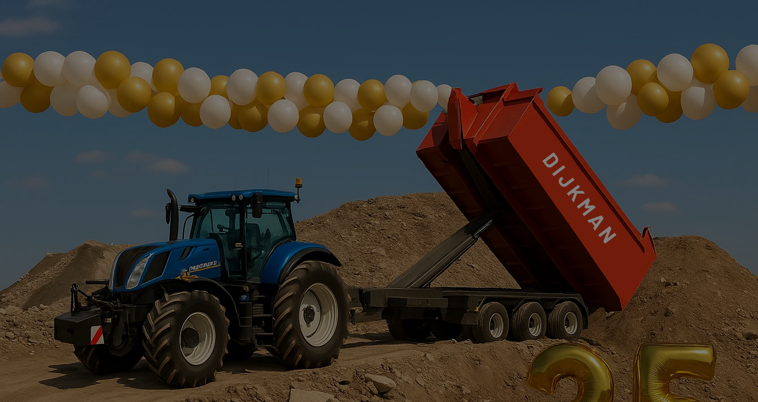 Medewerkers, opdrachtgevers, relaties en vrienden van de firma, Dijkman sloop- en grondwerken bestaat dit jaar 25 jaar en dat vieren we graag samen met jullie! Dankzij jullie hebben we deze mijlpaal mogen bereiken dus voor jullie pakken we uit. Samen zetten we op 19 september de Wijkermeerweg weer eens op stelten, het wordt een knaller!